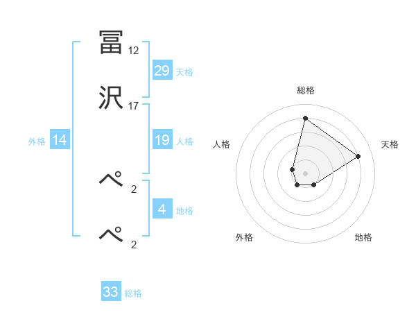 冨沢 ぺぺさんを姓名の画数から五運を鑑定