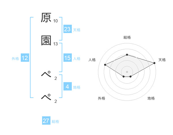 原園 ぺぺさんを姓名の画数から五運を鑑定