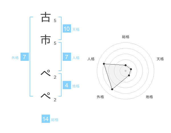 古市 ぺぺさんを姓名の画数から五運を鑑定