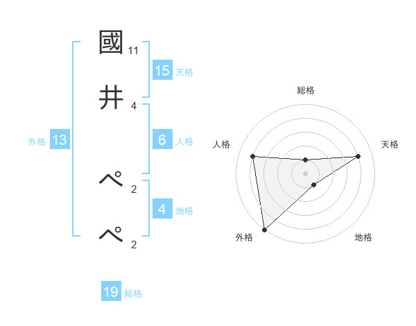 國井 ぺぺさんの総格は19画の1点!