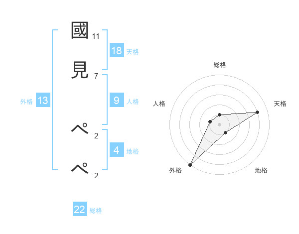 國見 ぺぺさんの外格は13画の5点!