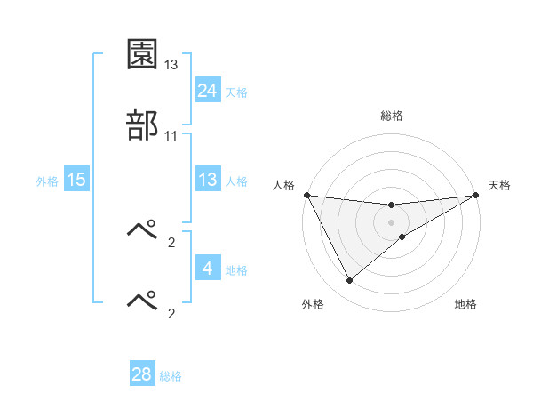園部 ぺぺさんを姓名の画数から五運を鑑定