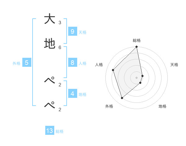 大地 ぺぺさんの総格は13画の5点!