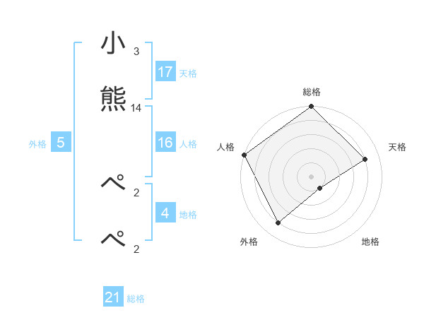 小熊 ぺぺさんの天格は17画の4点!