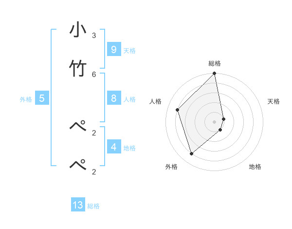 小竹 ぺぺさんを姓名の画数から五運を鑑定