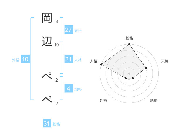 岡辺 ぺぺさんを姓名の画数から五運を鑑定