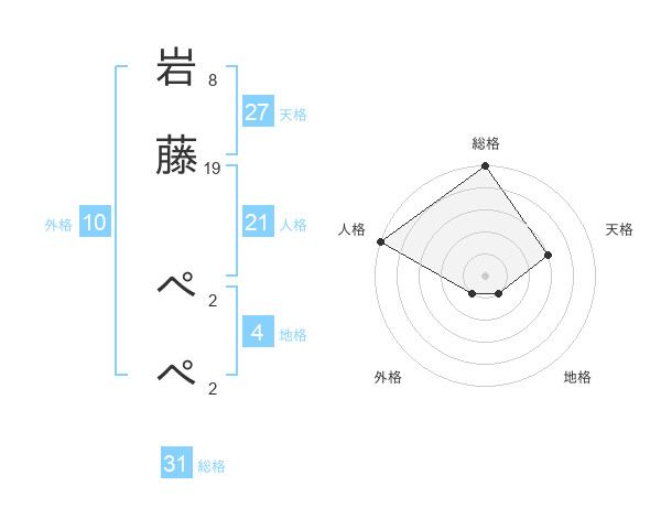 岩藤 ぺぺさんの総格は31画の5点!