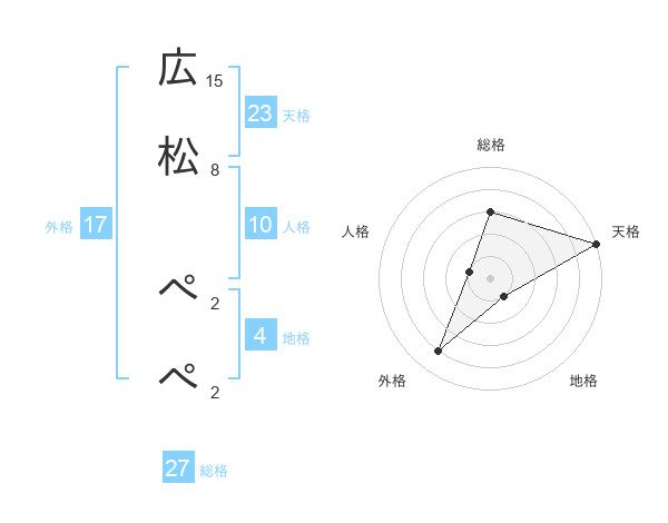 広松 ぺぺさんを姓名の画数から五運を鑑定