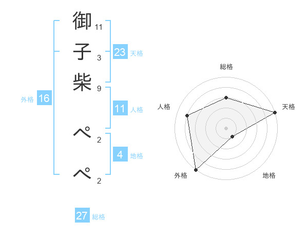 御子柴 ぺぺさんの総格は27画の3点!
