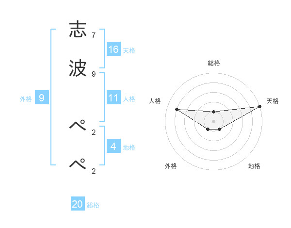 志波 ぺぺさんの総格は20画の1点!