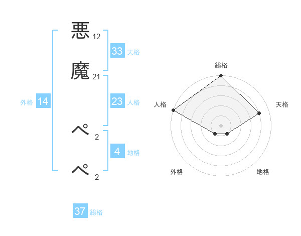 悪魔 ぺぺさんの総格は37画の5点!