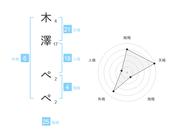 木澤 ぺぺさんを姓名の画数から五運を鑑定
