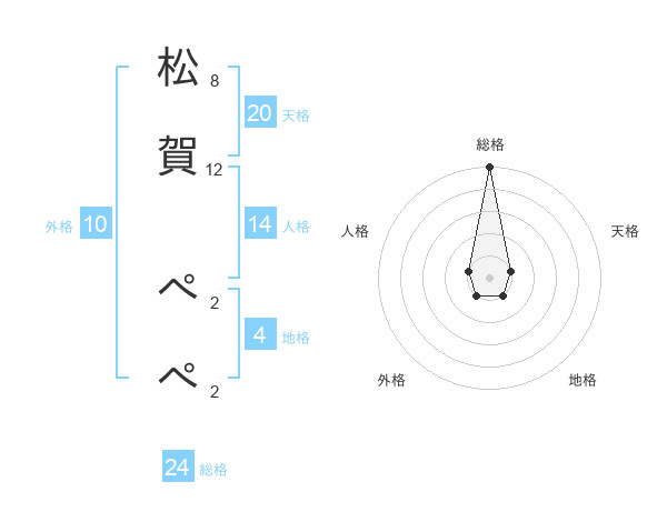 松賀 ぺぺさんを姓名の画数から五運を鑑定