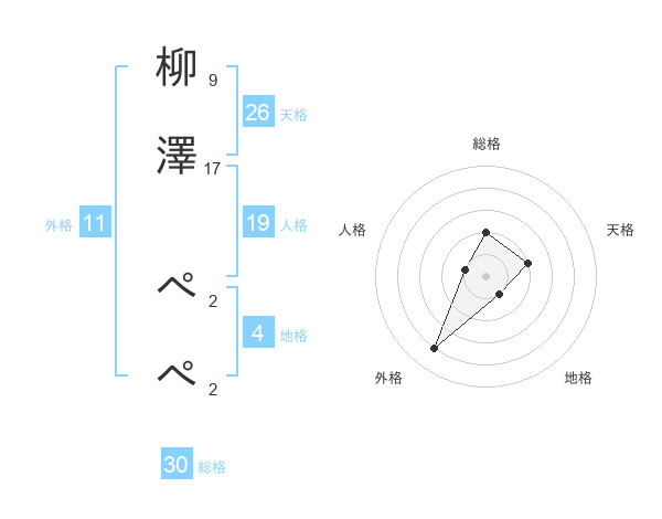 柳澤 ぺぺさんの外格は11画の4点!