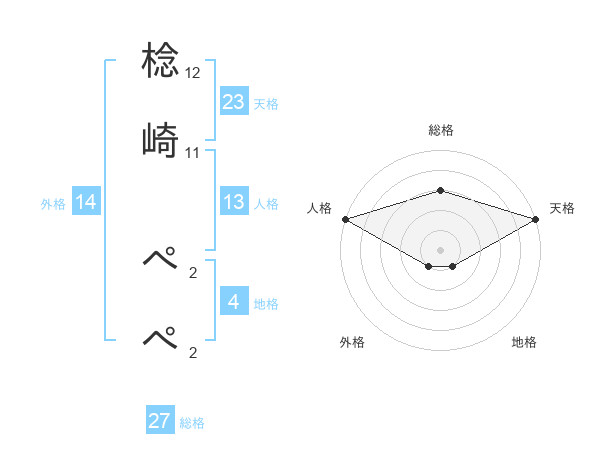 棯崎 ぺぺさんの天格は23画の5点!