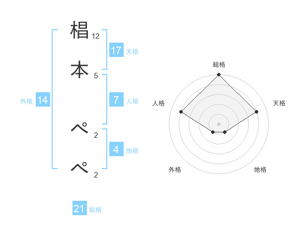 椙本 ぺぺさんを姓名の画数から五運を鑑定