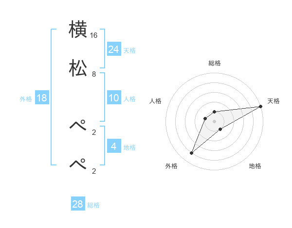 横松 ぺぺさんの総格は28画の1点!