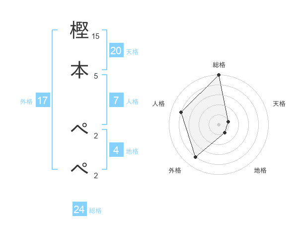 樫本 ぺぺさんの総格は24画の5点!