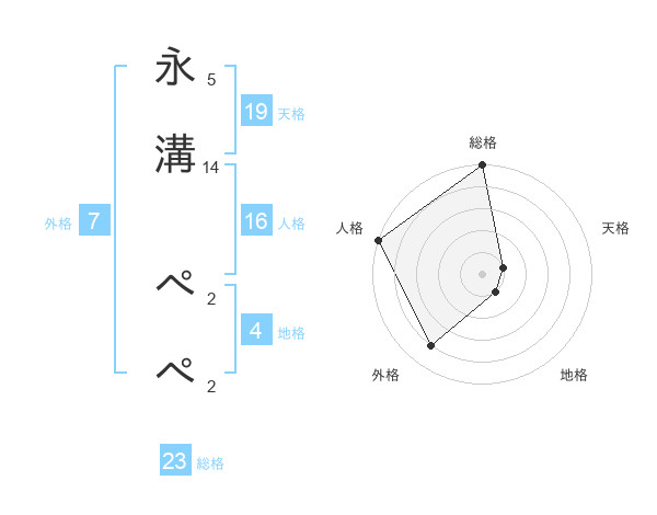 永溝 ぺぺさんの総格は23画の5点!