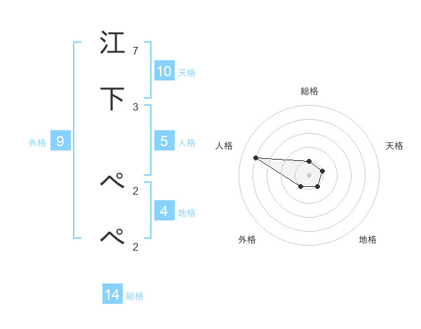 江下 ぺぺさんを姓名の画数から五運を鑑定