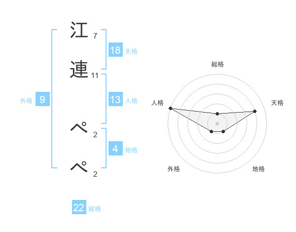 江連 ぺぺさんの総格は22画の1点!