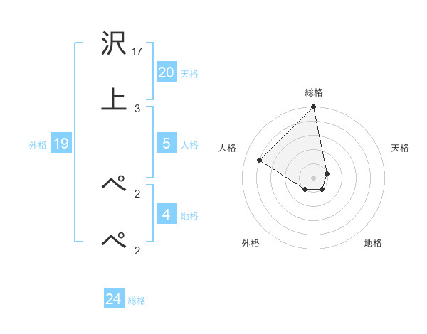 沢上 ぺぺさんを姓名の画数から五運を鑑定