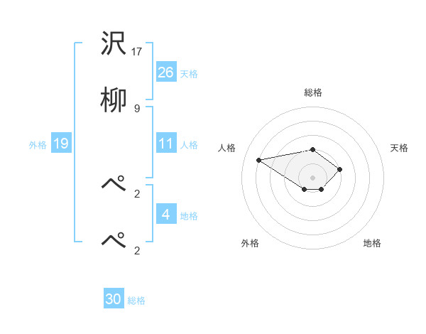 沢柳 ぺぺさんを姓名の画数から五運を鑑定
