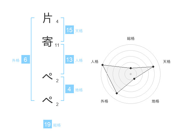 片寄 ぺぺさんの天格は15画の4点!