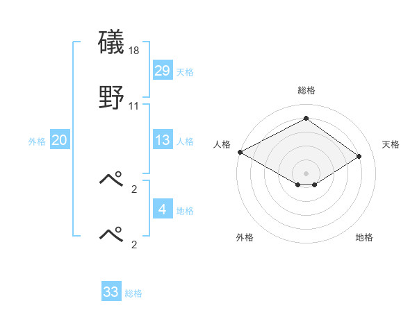礒野 ぺぺさんの天格は29画の4点!