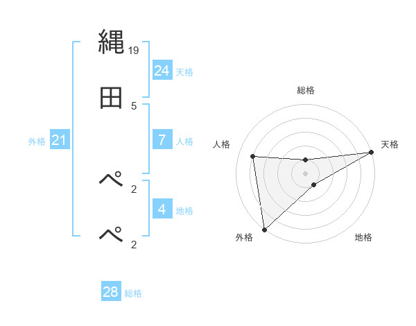 縄田 ぺぺさんの外格は21画の5点!