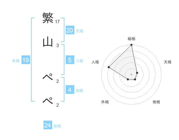 繁山 ぺぺさんを姓名の画数から五運を鑑定