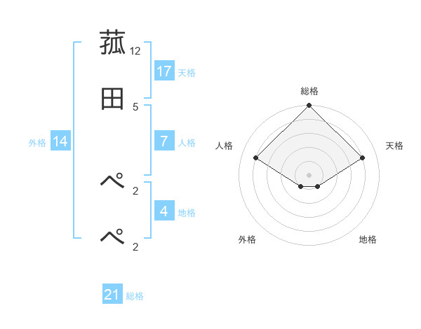 菰田 ぺぺさんの天格は17画の4点!