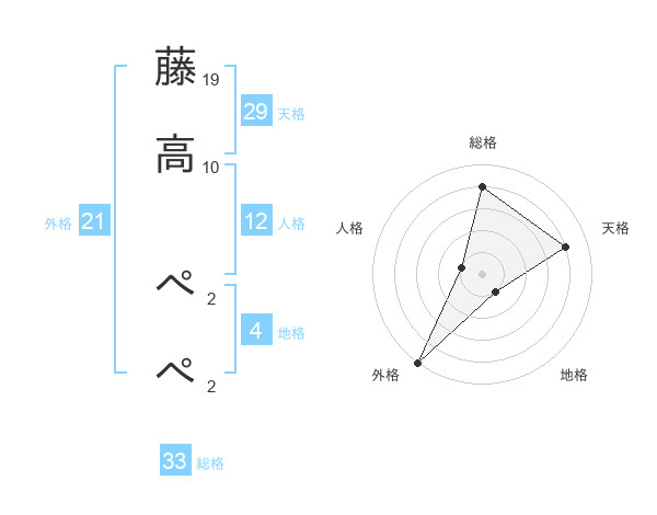 藤高 ぺぺさんの天格は29画の4点!