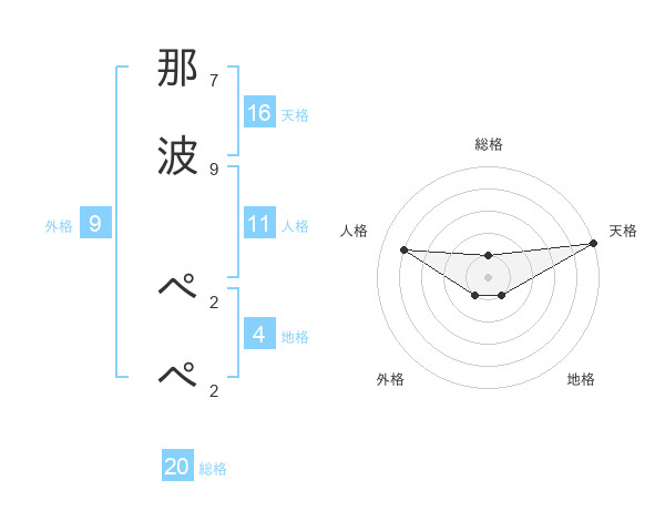 那波 ぺぺさんの総格は20画の1点!