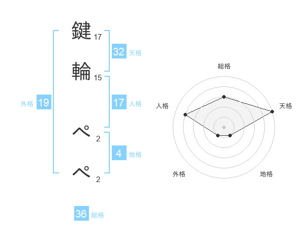 鍵輪 ぺぺさんの天格は32画の5点!