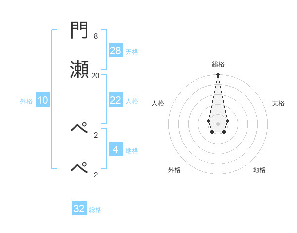門瀬 ぺぺさんの総格は32画の5点!
