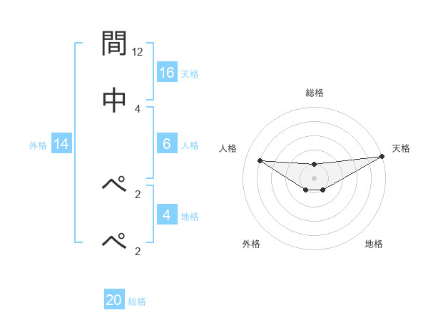 間中 ぺぺさんを姓名の画数から五運を鑑定