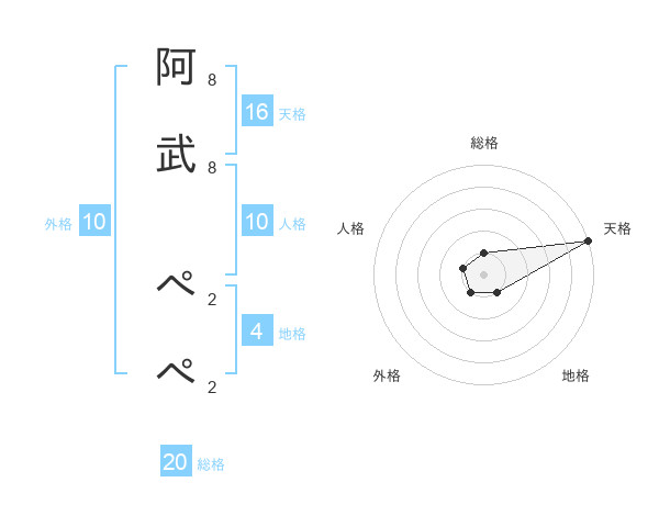 阿武 ぺぺさんの天格は16画の5点!