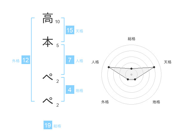 高本 ぺぺさんの天格は15画の4点!