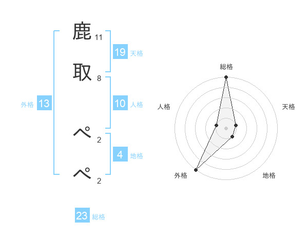 鹿取 ぺぺさんの外格は13画の5点!