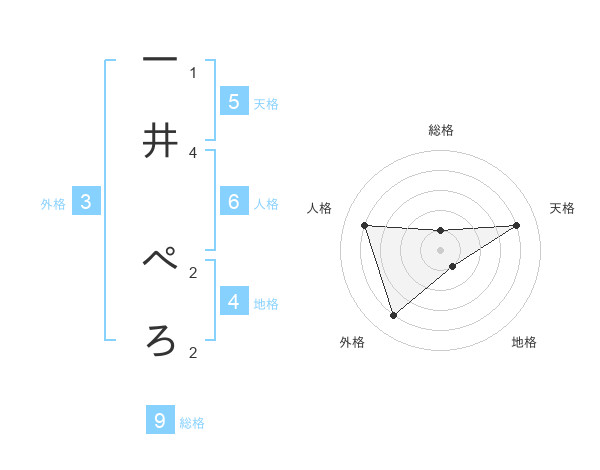 一井 ぺろさんを姓名の画数から五運を鑑定