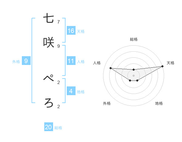 七咲 ぺろさんを姓名の画数から五運を鑑定