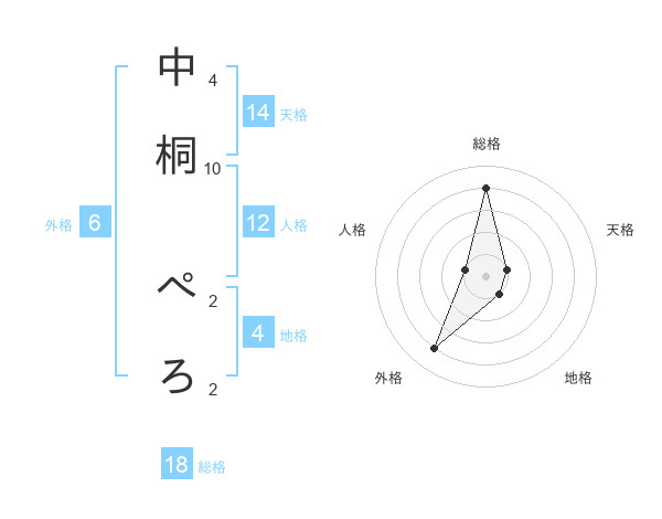 中桐 ぺろさんの総格は18画の4点!