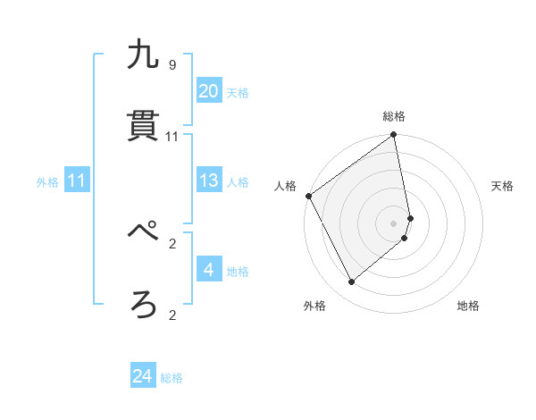 九貫 ぺろさんの総格は24画の5点!