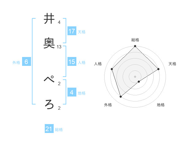 井奥 ぺろさんの天格は17画の4点!