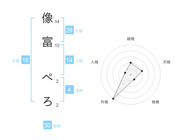 像富 ぺろさんを姓名の画数から五運を鑑定