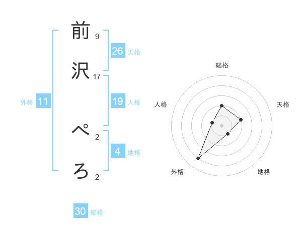 前沢 ぺろさんを姓名の画数から五運を鑑定