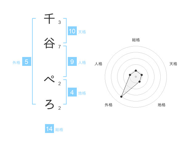 千谷 ぺろさんを姓名の画数から五運を鑑定