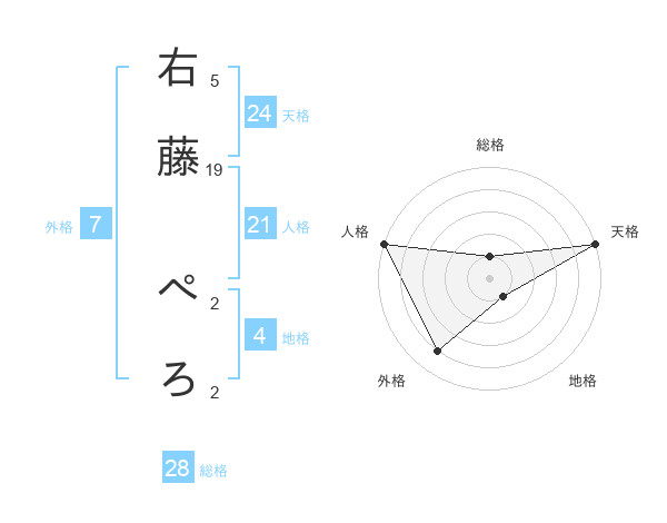 右藤 ぺろさんの外格は7画の4点!