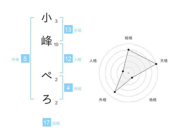小峰 ぺろさんを姓名の画数から五運を鑑定